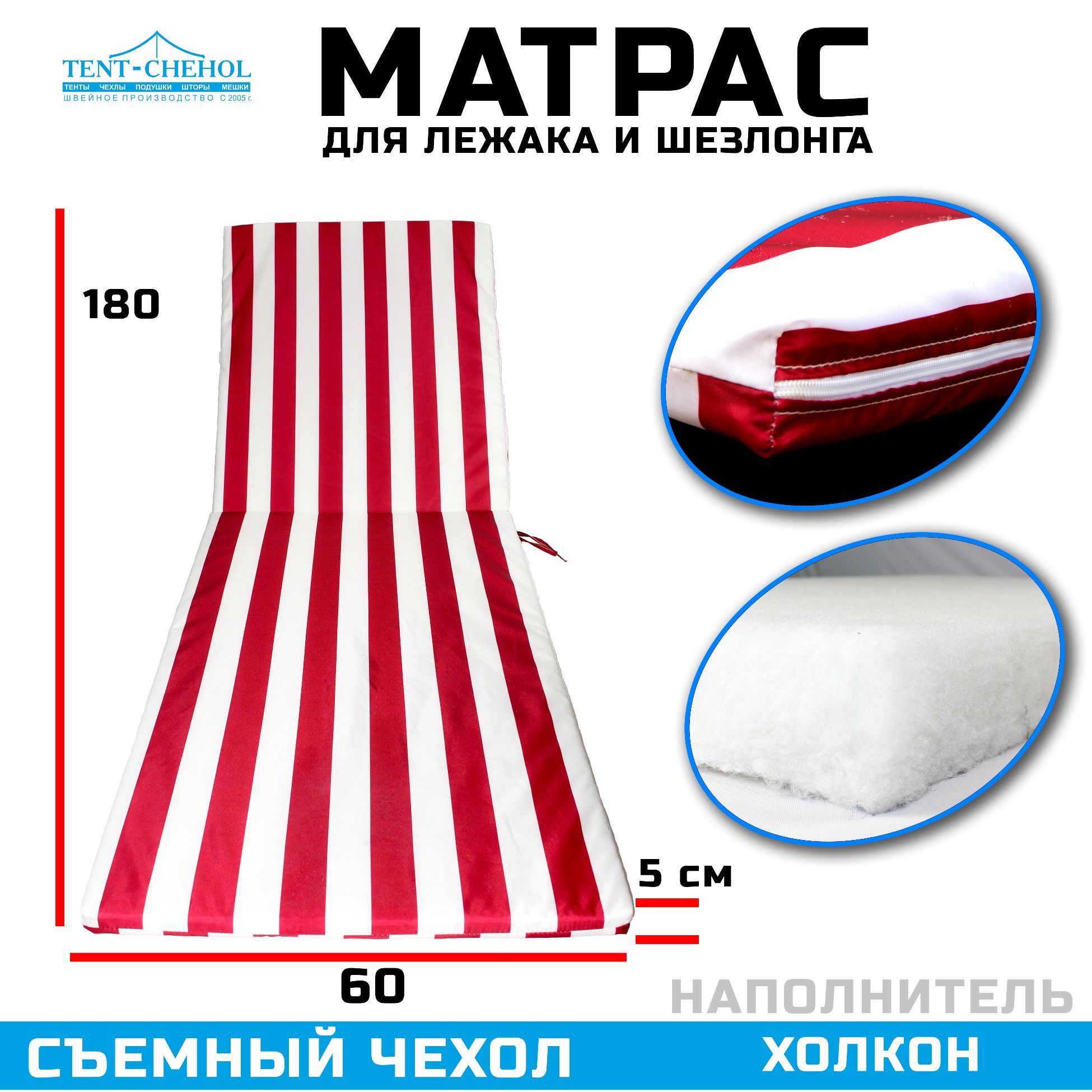 Купить Матрас для шезлонгов 180х60х5 (бело-красный) цена 2100 руб. в Москве и СПб с доставкой по России