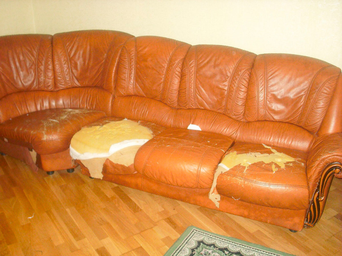 1. Кожаная обивка треснула, есть порезы, выбился наполнитель