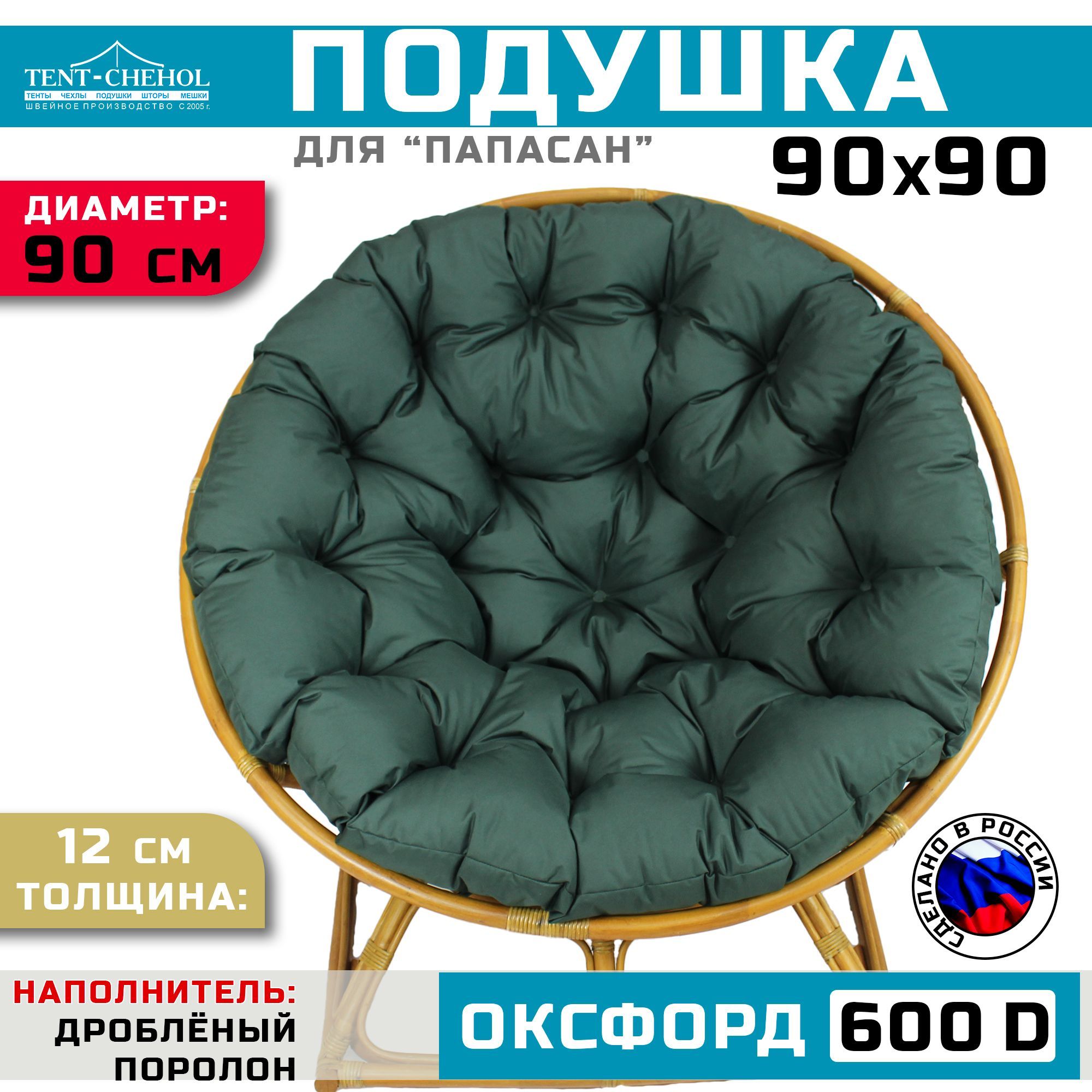 Краткое описание «Подушка для кресла и качелей 90 см, еловая (Оксфорд 600)»