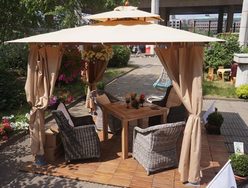 Вам нравится устраивать разнообразные праздники на свежем воздухе? Тогда вам точно пригодятся шатры, предназначенные для дачи. Их преимущество заключается в том, что абсолютно все ваши гости могут находиться под его крышей, при этом они будут защищены от солнечных лучей, или же дождя. Очень хорошо будет смотреться вариант, когда хозяин будет использовать данный предмет для дачи в качестве летнего кафе. Вы можете приобрести сразу несколько шатров, они будут расположены неподалёку, и под каждым шатром разместить стулья и стол. Ваши гости точно будут довольны! Также такой шатёр сможет защитить не только от плохой погоды, но и от вредных комаров, а также мух. У нас вы найдёте огромный выбор таких шатров, от самых простых и маленьких, до очень дорогих, а также изысканных моделей, которые напоминают здания в восточном стиле. Благодаря дизайну такой шатёр станет замечательным дополнением для вашего дачного участка. Также такие изделия являются максимально мобильными.