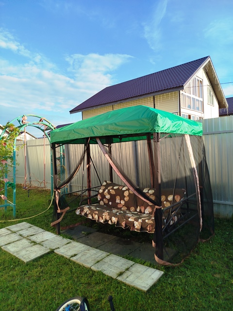 Краткое описание «Тент крыша с москитной сеткой на качели-павильон садовые Эдельвейс, цвет зеленый»